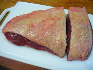 A outra parte cortei em bifes (contra as fibras) e guardei.